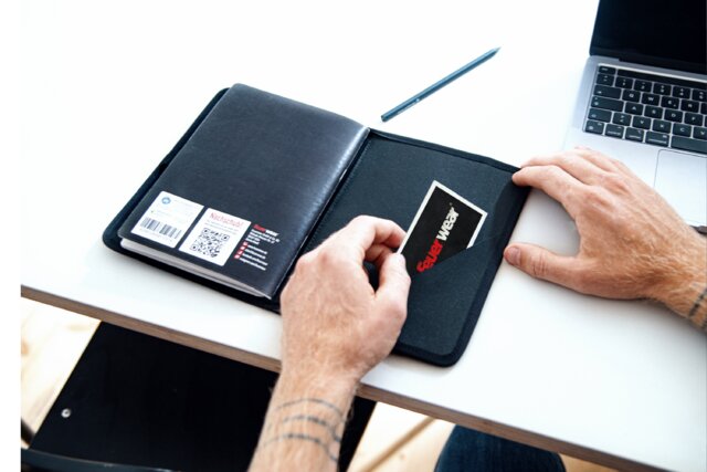 Notizheft, Stift und Karten sind sauber verstaut. Du findest sofort, was du brauchst – ohne Suchen, ohne Kramen.