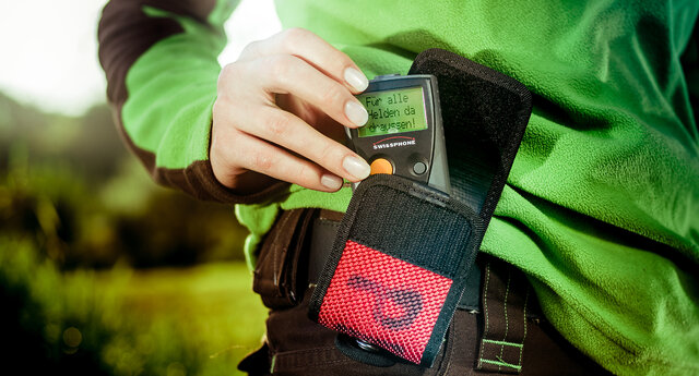 Die 6cm breite Gürtelschlaufe hingegen hält Deine Funkmeldertasche mittels extrastarkem Ringfederdruckknopf sicher in Reichweite.