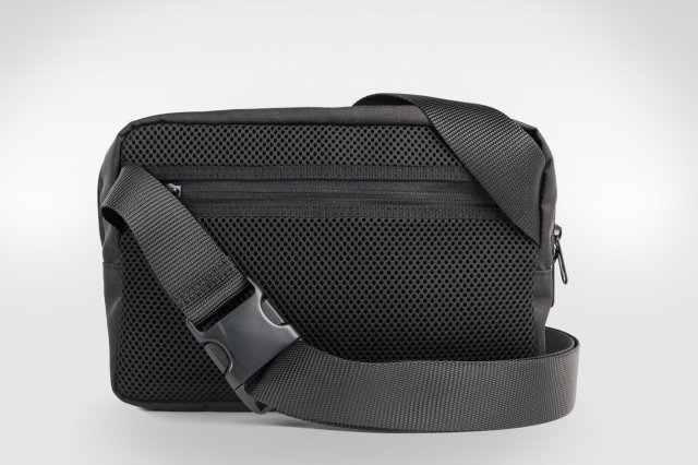 Das rückseitige Reißverschlussfach liegt direkt am Körper. Ideal für Wertsachen. Die gepolsterte Rückseite mit Mesh sorgt für angenehmen Tragekomfort – auch an langen Tagen.