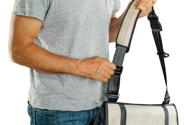 Das gepolsterte Schulterpolster verteilt das Gewicht gleichmäßig. So sitzt Gordon stabil und bequem – auch wenn er voll beladen ist.
