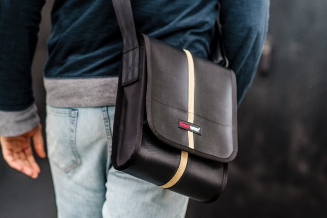Der längenverstellbare Schultergurt aus robustem Autosicherheitsgurt ermöglicht komfortables Tragen über der Schulter oder quer über den Körper. Mit kompakten Maßen von 32 x 22,5 x 10 cm (HxBxT) und einem Gewicht von etwa 850 g ist Jack der ideale Begleiter für deinen urbanen Alltag.
